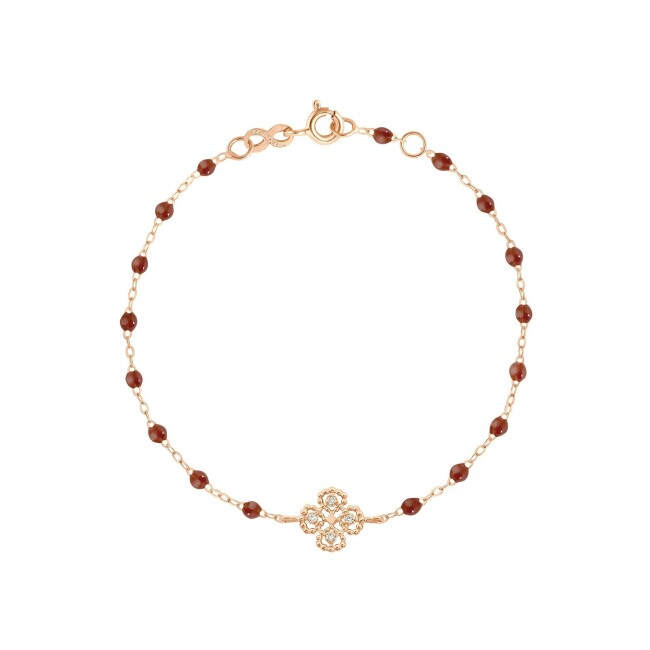 Bracelet Gigi Clozeau Lucky Trèfle en or rose, résine moka et diamants, taille 17cm