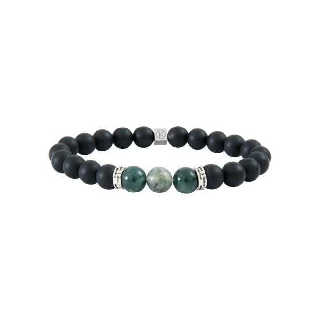 Les Hommes Bracelet IKOBA Les Hommes en agate mousse et agate noire dépolie