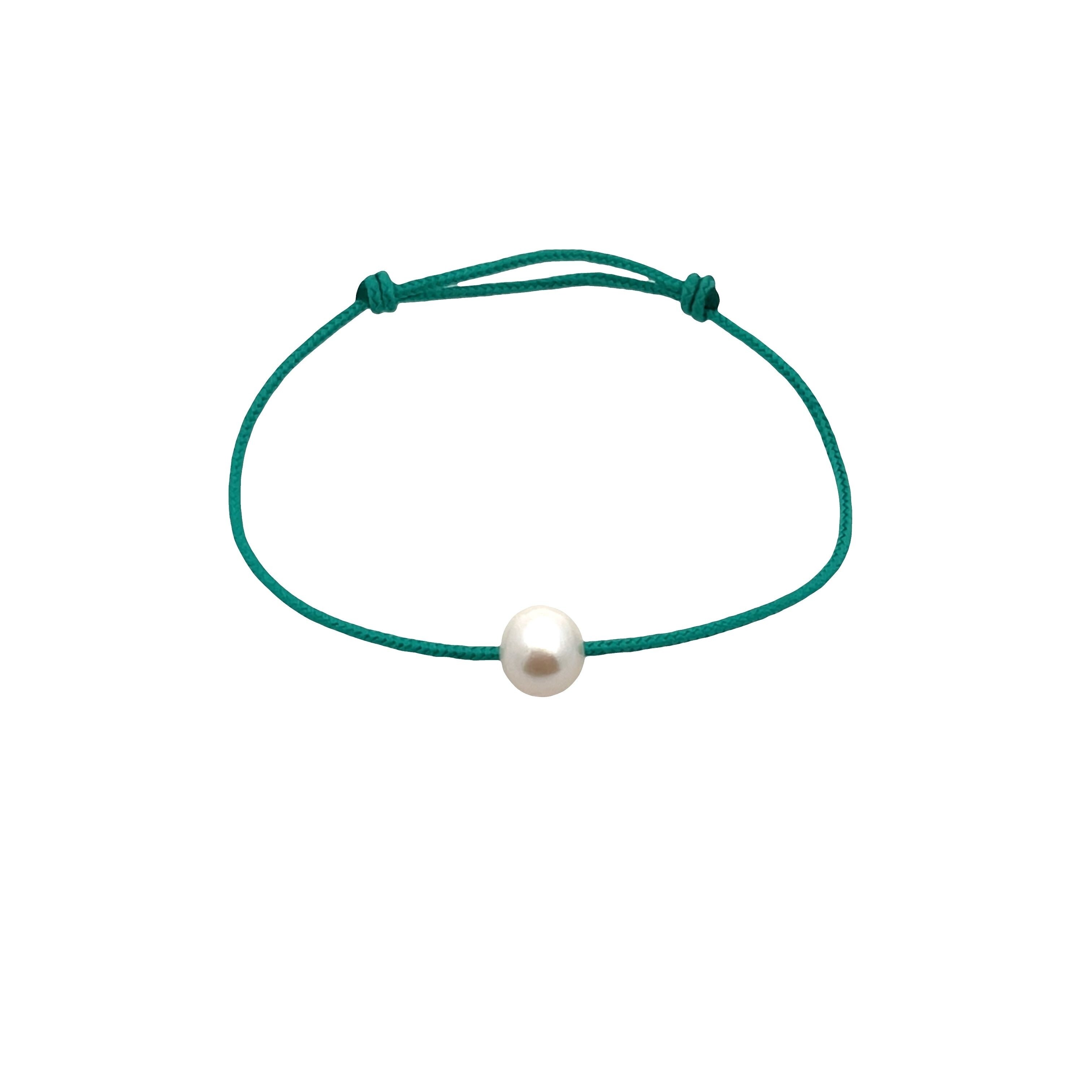Bracelet cordon avec noeuds coullissants et perle de culture.