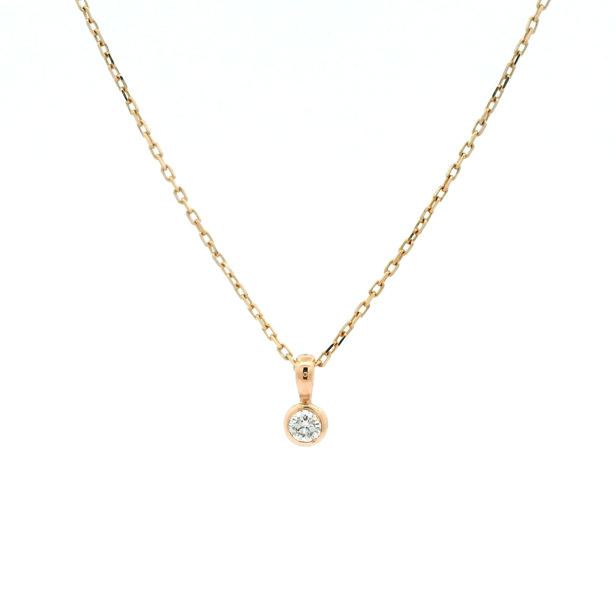 Collier en or rose 18 karats (750/1000ème) serti clos avec 1 diamants taille brillant de 0.06carat sur chaine maille forçat.