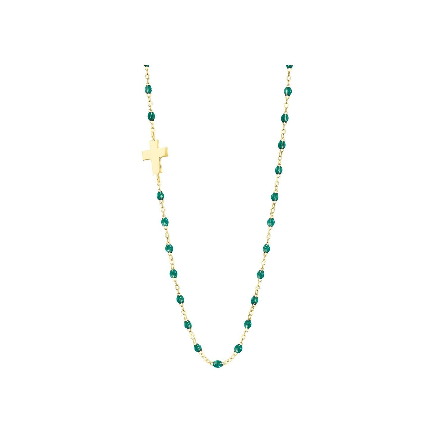 Collier Gigi Clozeau Croix en or jaune et résine vert émeraude, taille 42cm