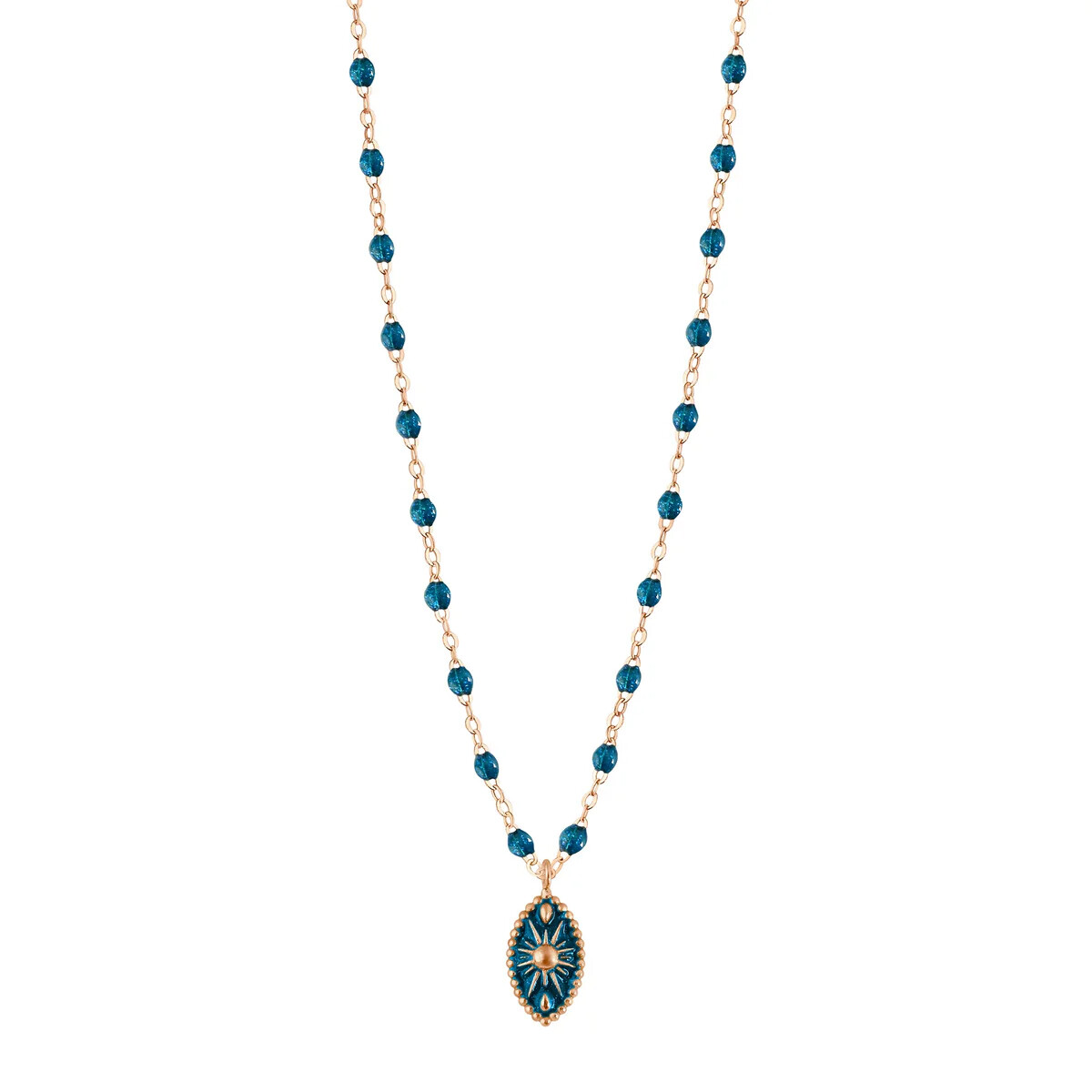 Collier Gigi Clozeau Karma en or rose et résine jungle, 42 cm