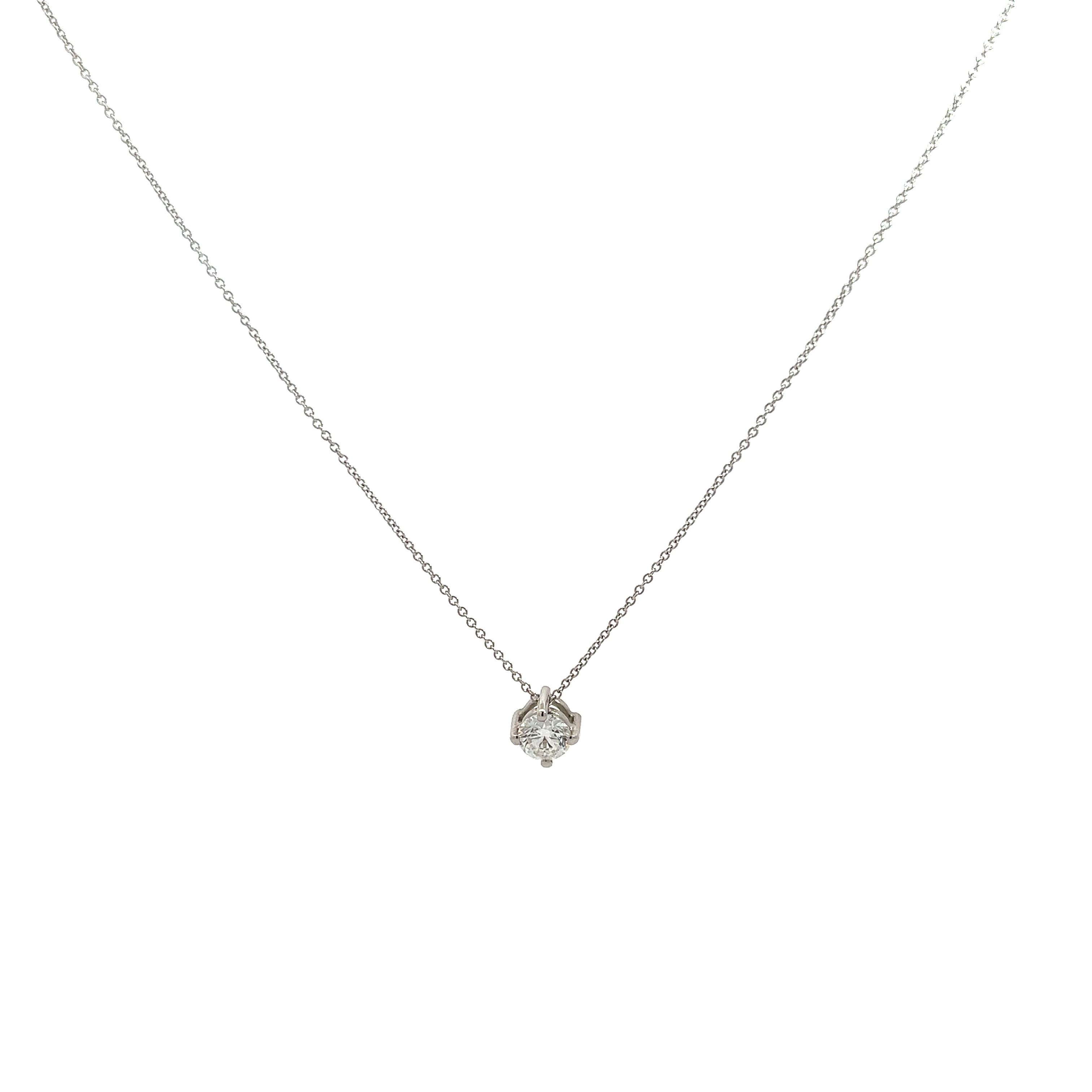 Collier avec solitaire diamant 4 griffes en or blanc 750/1000 sur chaine maille forçat rond