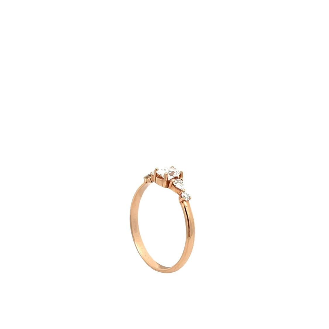 Bague Solitaire accompagné en or rose 18 karats (750/1000) serti d'un diamant taille ovale de 0.30carat, de deux diamants taille poire de 0.12 carat au total et de deux diamants taille brillant de 0.06carat au total