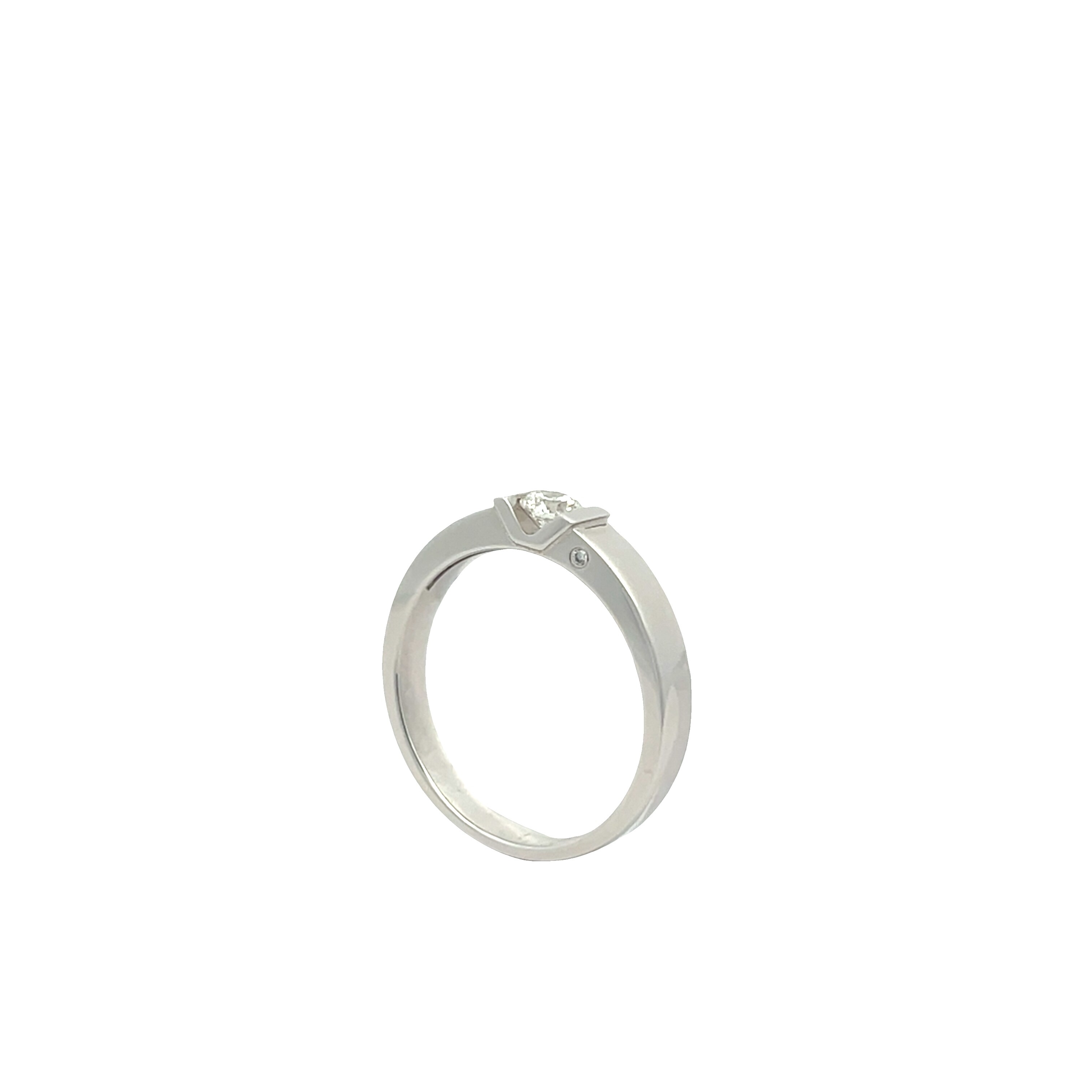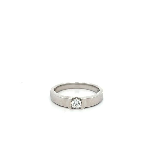 Bague Solitaire serti espace en diamant et monture en or blanc 750/1000.